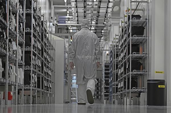 安世半导体的一名员工走过该公司的洁净室。 视觉中国